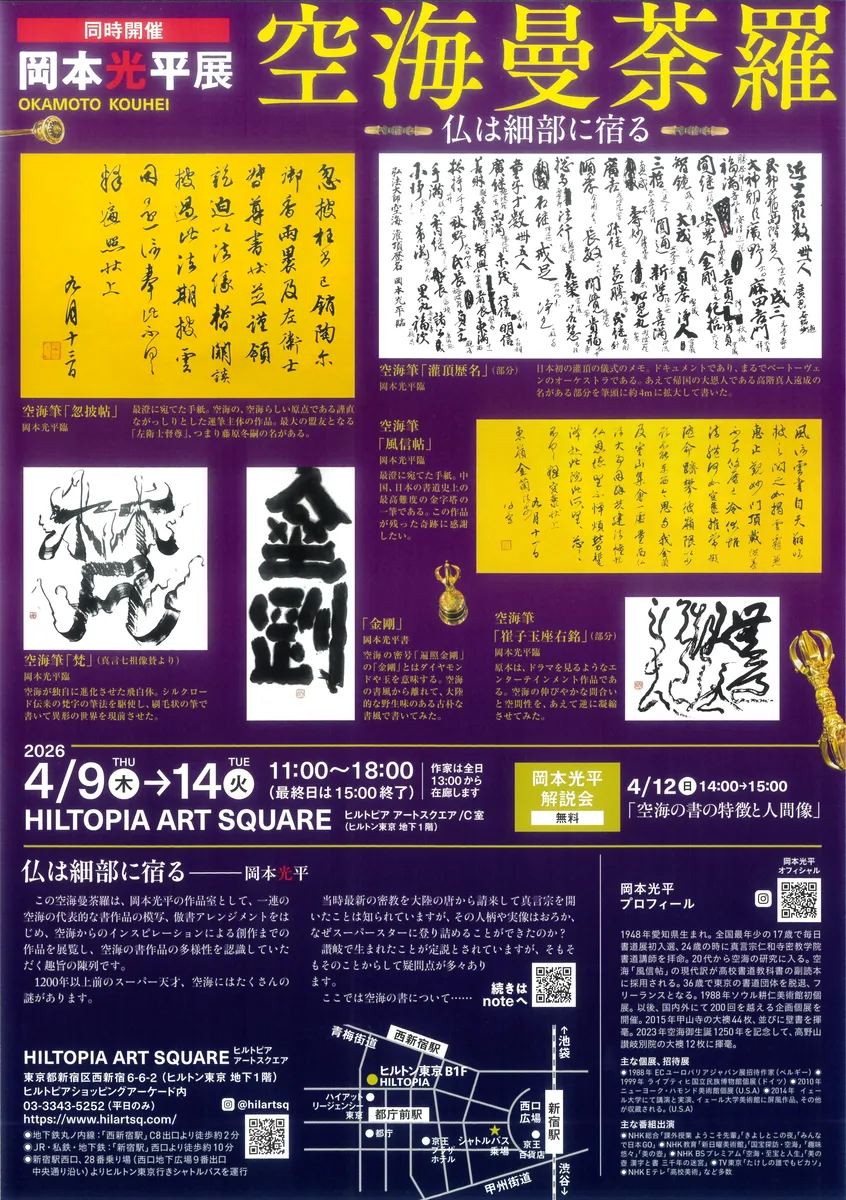 今回の展覧会では、現在も残されている空海の書作品を起点にしながら出品者各々の個性、表現の自由、そしてさまざまな方法手段による多様な表現を具現化した作品展です。出口胡蝶の作品もぜひご覧ください。