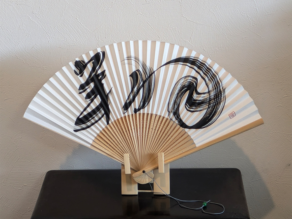 自分で調合したオリジナル墨や、手作り筆など、様々な道具や材料を駆使して自由なアイデアで書アートを表現します。